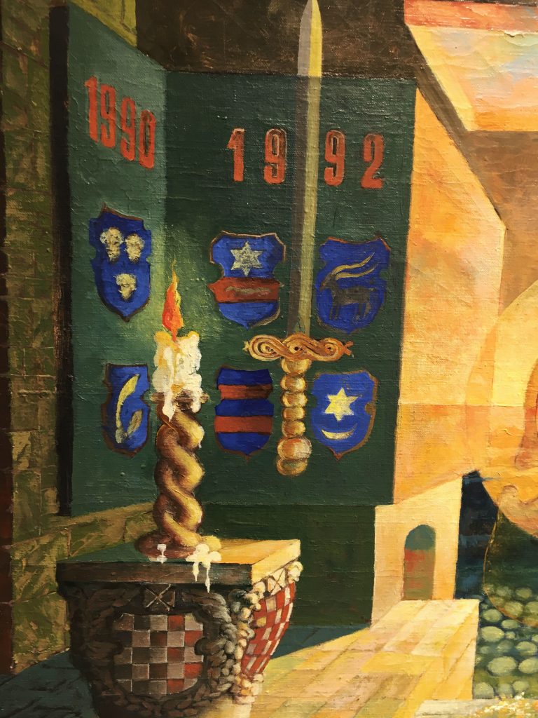 Yürümeyi, kendi halimde gezerek şehri keşfetmeyi, sıralı bir şekilde şehir turlarını takip etmekten daha çok seviyorum. Yine kendi halimizde yürürken 1930-2006 yıllarında yaşayan Antun Karavanić’in ücretsiz bir sanat galerisine denk geliyoruz ve içini gezmeye başlıyoruz. Eserlerine baktığımızda soğuk savaş izlerini görüyoruz. Orden za brutalnost (Vahşet Düzeni) isimli üçlü eserine baktığımızda bir tarafta Batı’nın yansımasını diğer tarafta Doğu’nun yansımasını iki eserin ortasında ise Doğu’nun(SSCB) özgürlük güneşi altında miğferli kırmızı bir Centaurun Moskova ve New York şehirleri arasında sıkışıp kaldığını görüyoruz. Bu eserleri Karavanić’in imzası niteliğinde olan müzik enstrümanları ile de desteklemeyi de ihmal etmiyor.